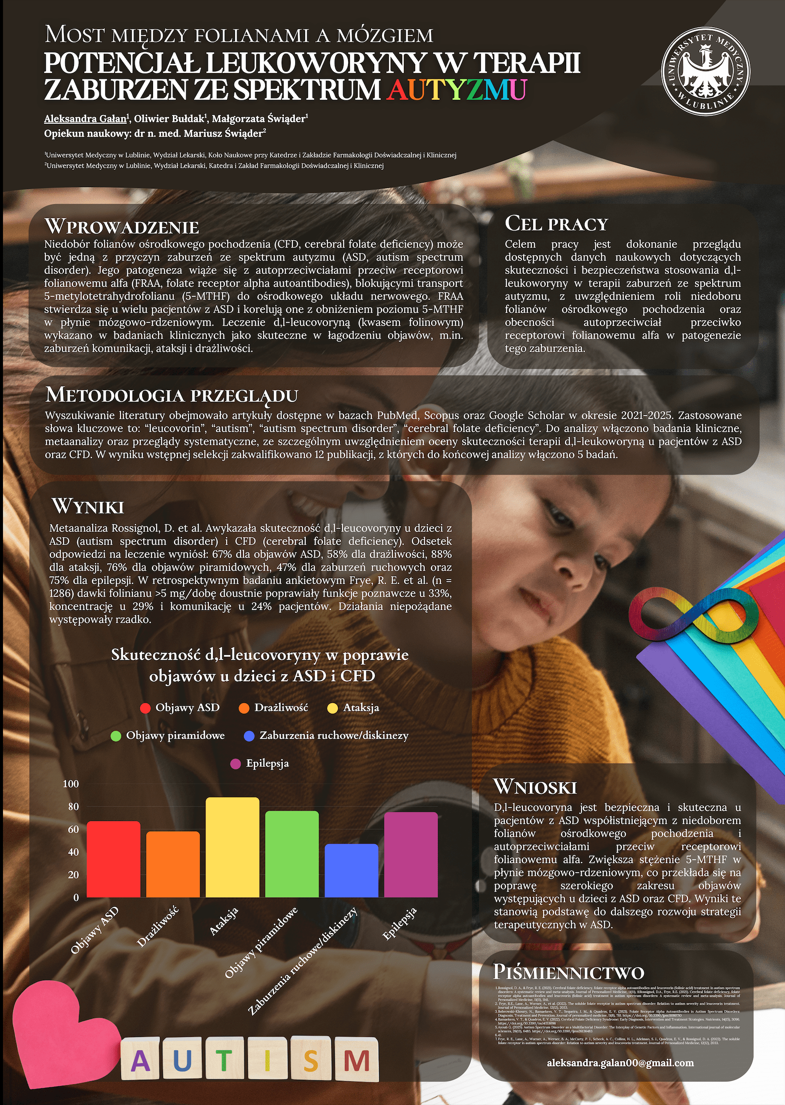 1 miejsce MOST MIĘDZY FOLIANAMI A MÓZGIEM – POTENCJAŁ LEUCOVORYNY W TERAPII ZABURZEŃ ZE SPEKTRUM AUTYZMU, Aleksandra Gałan, Oliwier Bułdak, Małgorzata Świąder