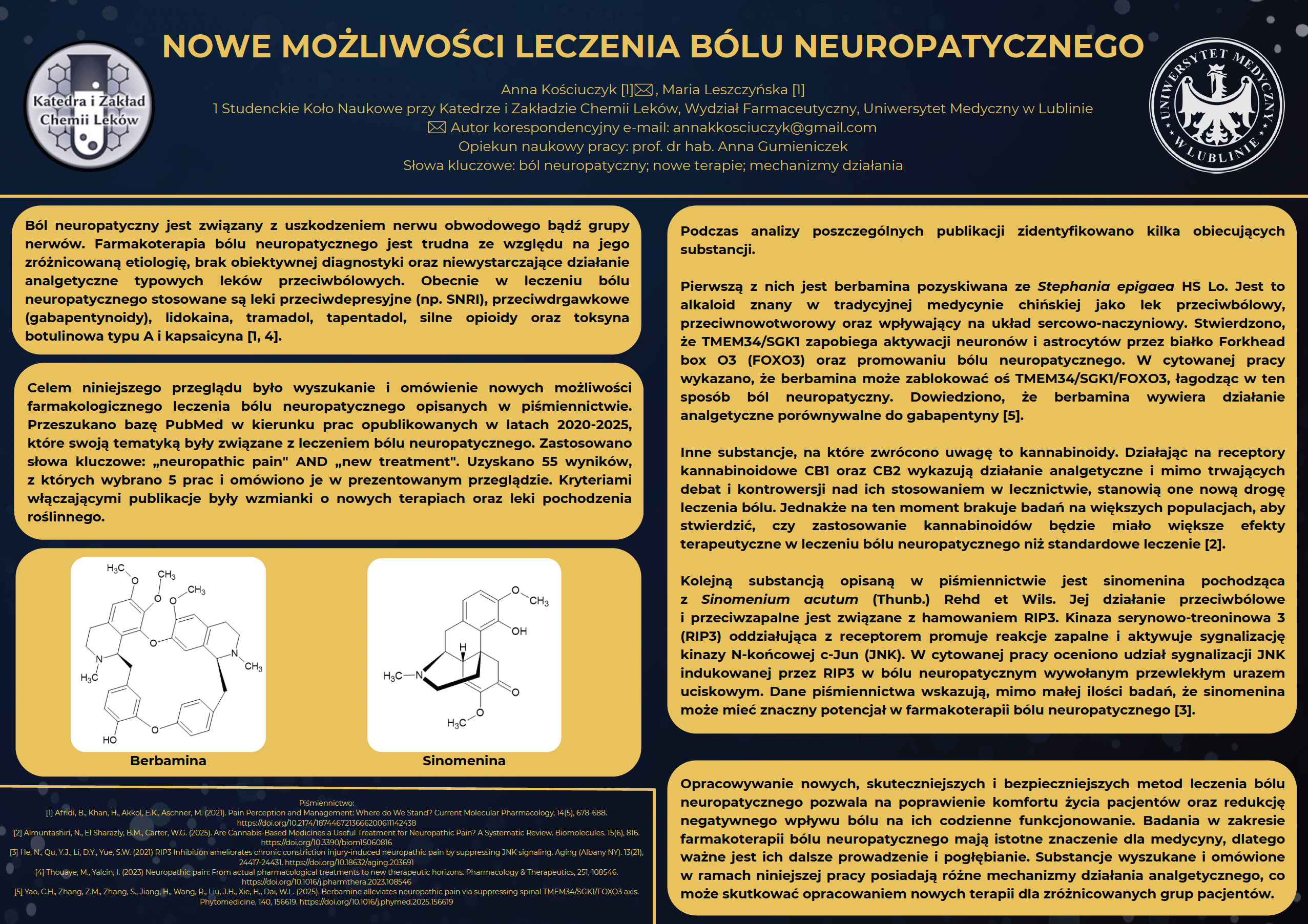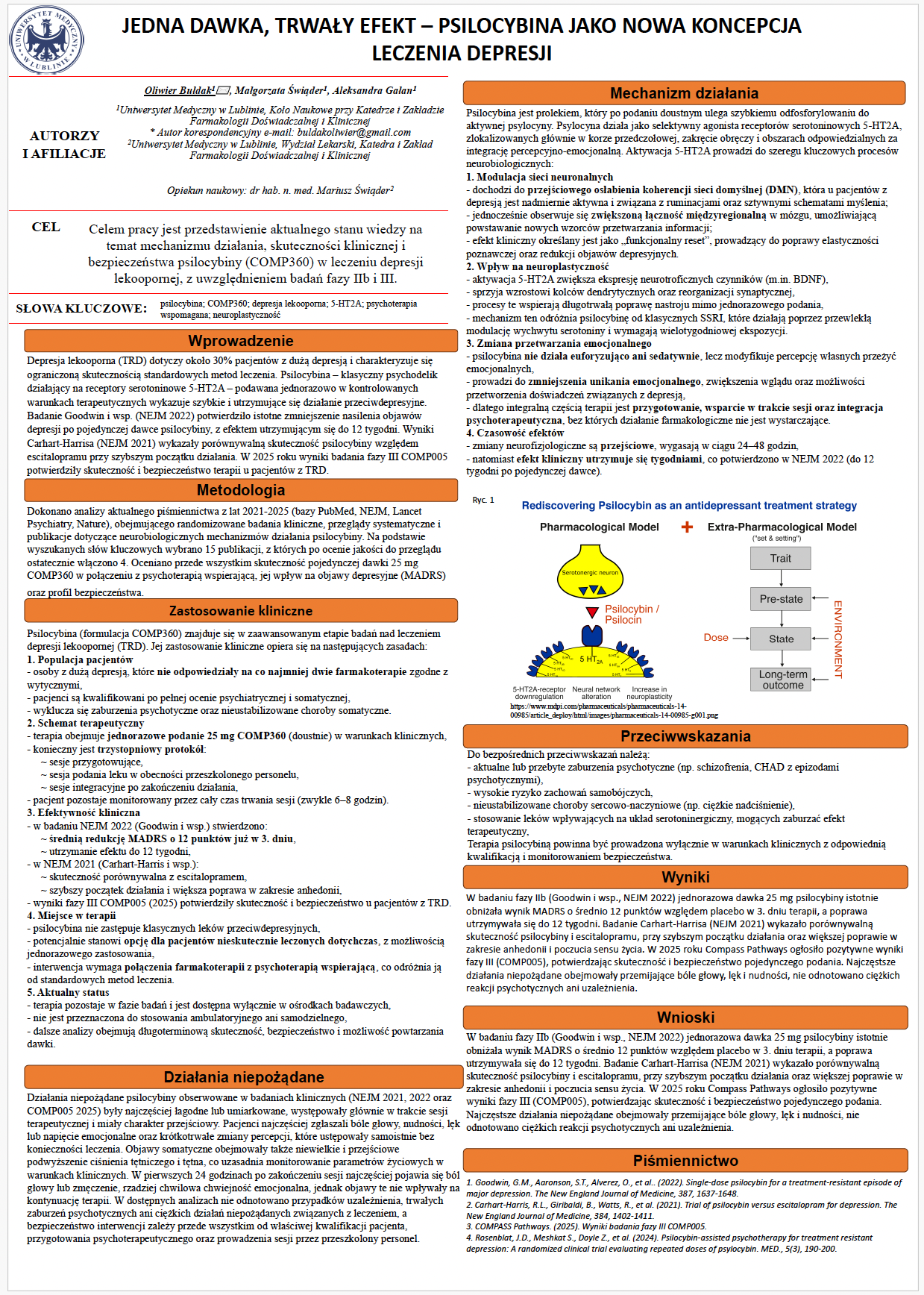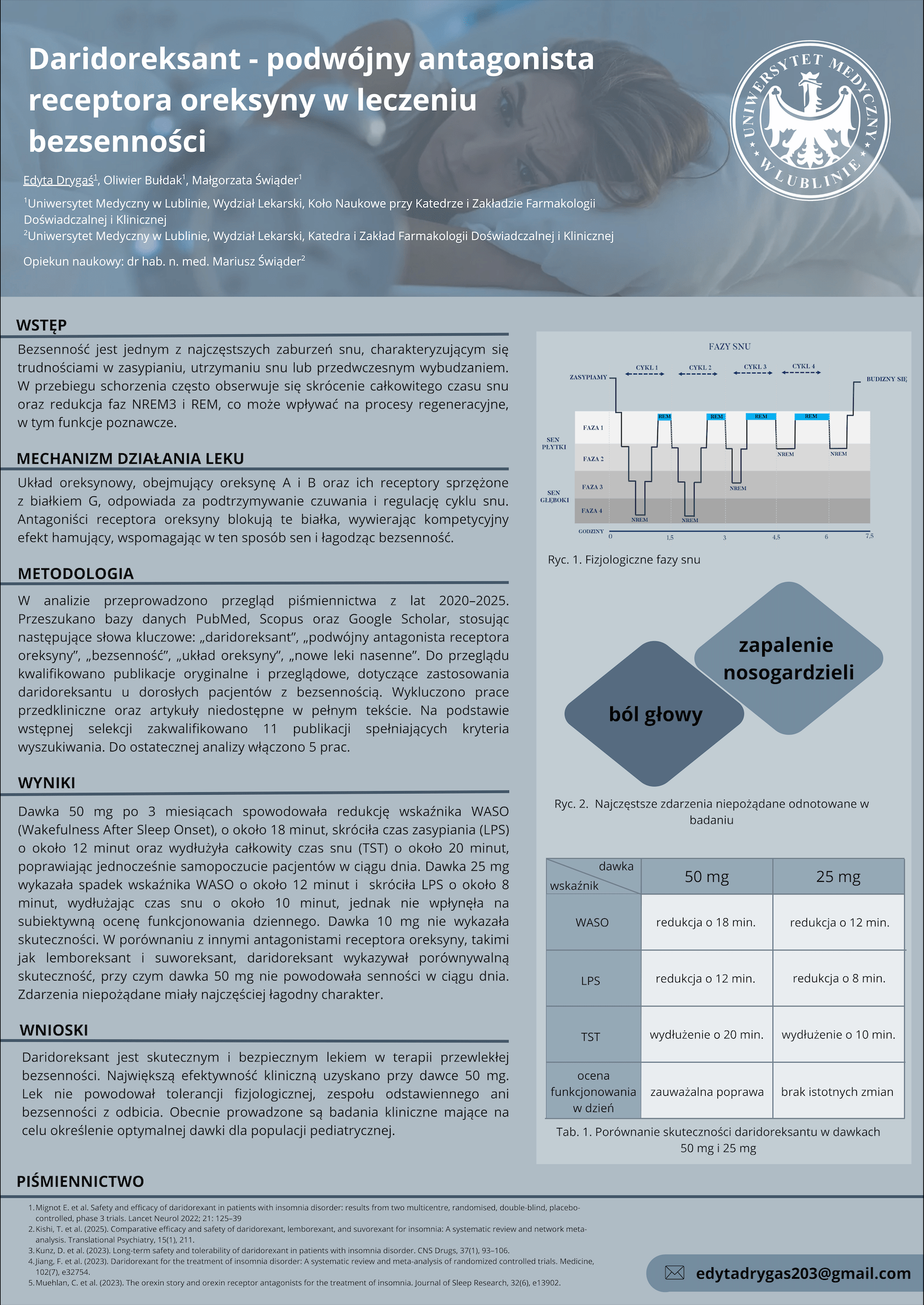 2 miejsce DARIDOREKSANT – PODWÓJNY ANTAGONISTA RECEPTORA OREKSYNY W LECZENIU BEZSENNOŚCI, Edyta Drygaś, Oliwier Bułdak, Małgorzata Świąder