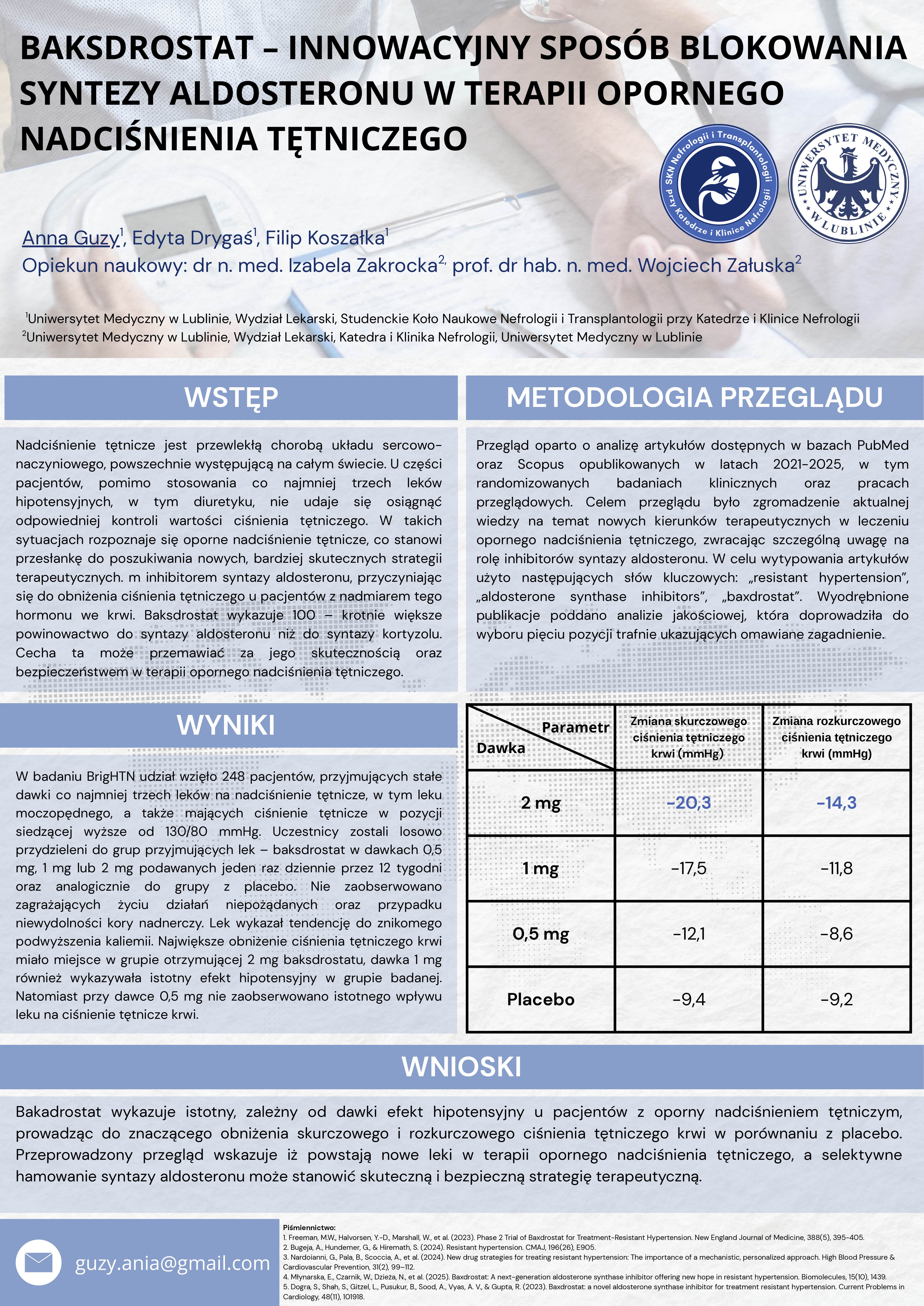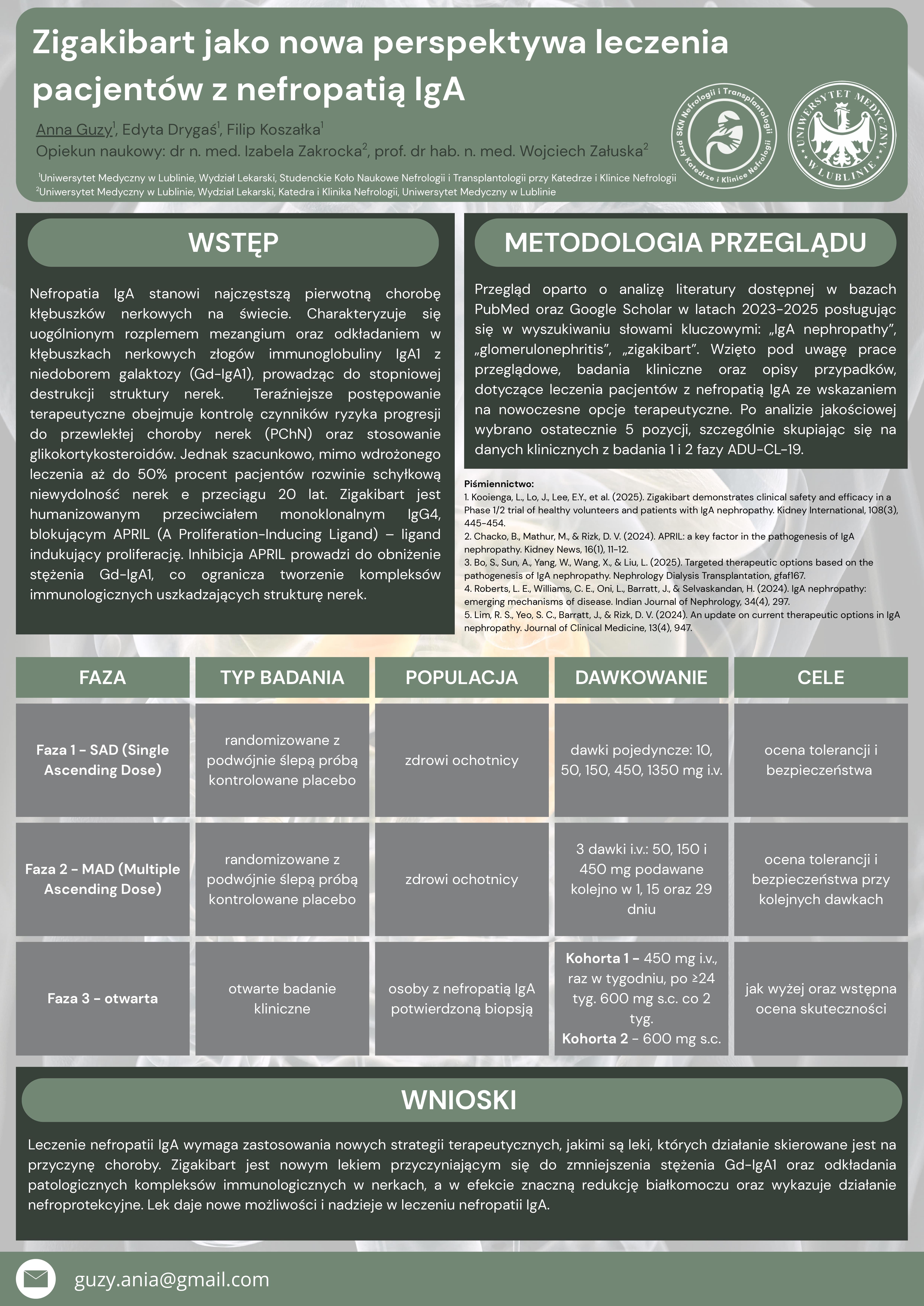 3 miejsce SZANSA NA SUKCES – FELZARTAMAB W LECZENIU ODRZUCANIA PRZESZCZEPU NERKI ZALEŻNEGO OD PRZECIWCIAŁ (ABMR), Aleksandra Gałan, Filip Koszałka, Anna Guzy