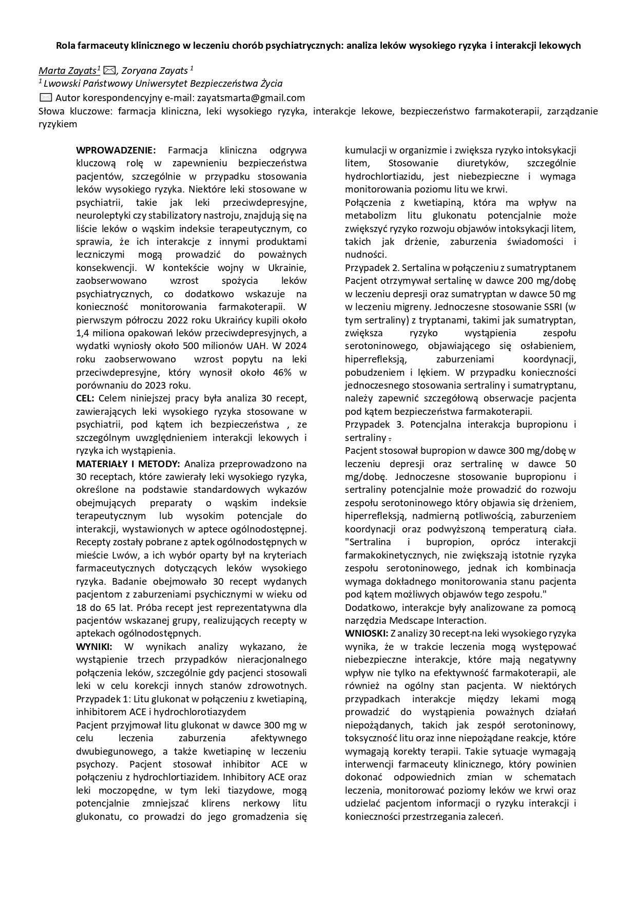 3 miejsce OŚ JELITOWO–MÓZGOWA I MODULACJA MIKROBIOTY W ZESPOLE POKOWIDOWYM: ROLA PROBIOTYKÓW I POSTBIOTYKÓW W ŁAGODZENIU OBJAWÓW NEUROPSYCHIATRYCZNYCH, Mariia Karpova, Ewa Sajnaga, Monika Elżbieta Jach